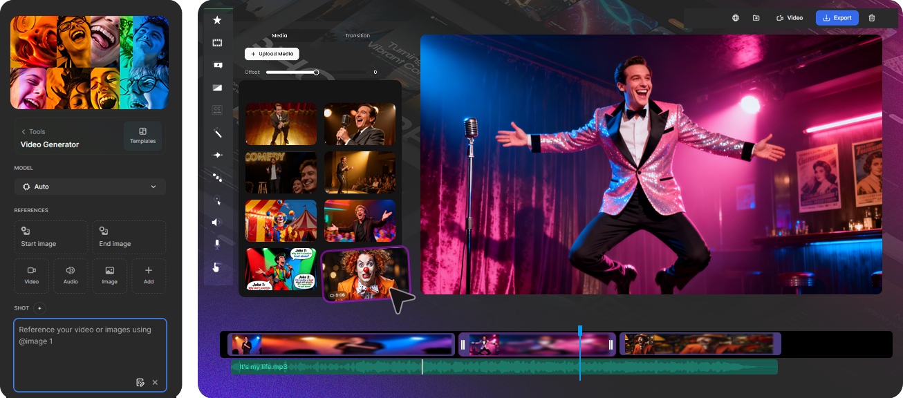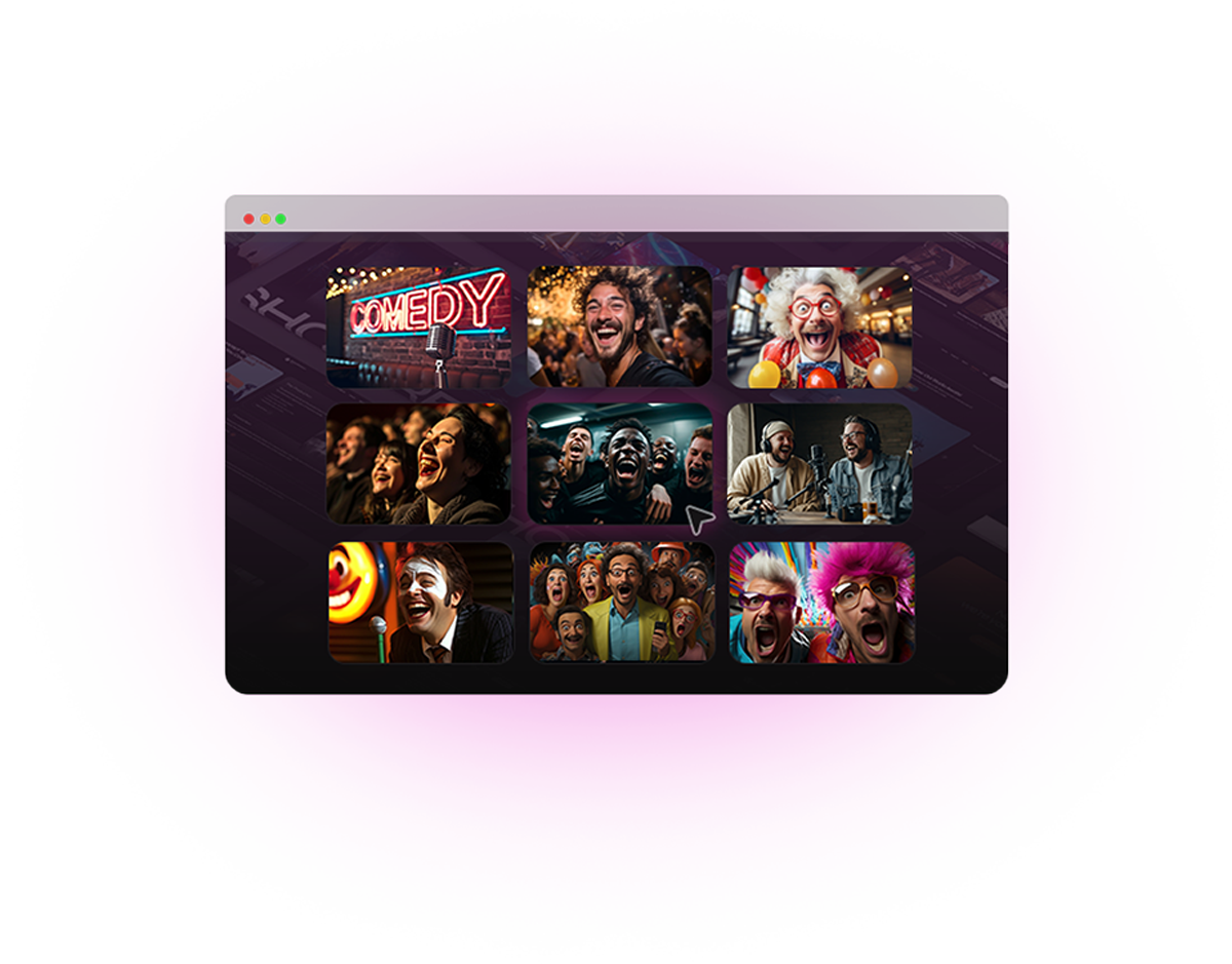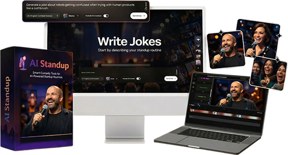 Create any kind of comedy—standup sets, sketches, roasts, observational humor, storytelling, or character comedy—with AI tools that adapt to your needs.