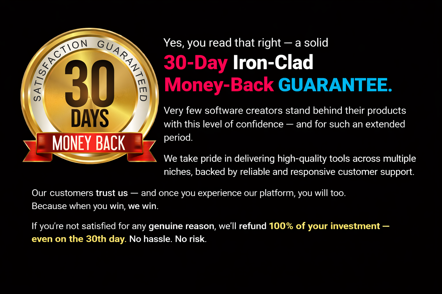You're fully protected with a 30-day money-back guarantee. If it's not the right fit, you can request a complete refund — no questions asked.